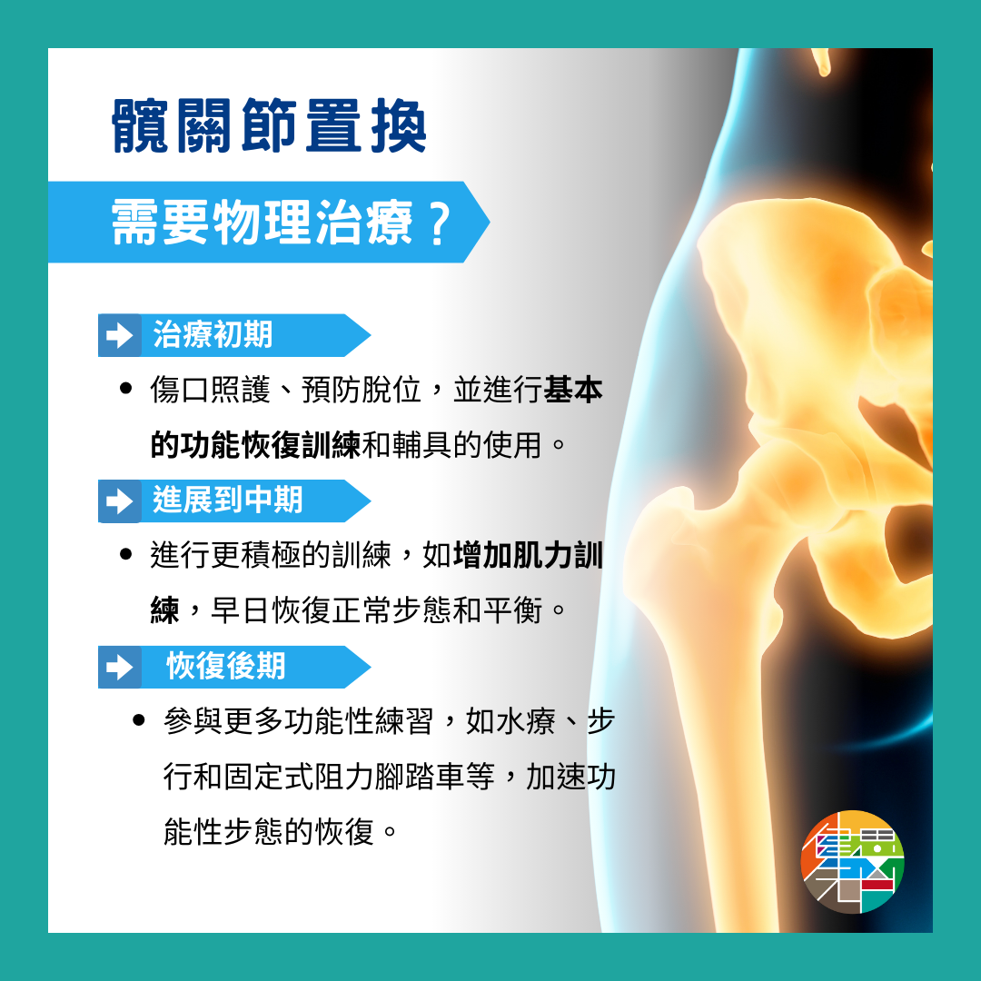 髖關節置換手術是一種常見的手術,旨在改善關節功能並減輕疼痛。術後物理治療的目標是加快恢復關節失能的狀態。