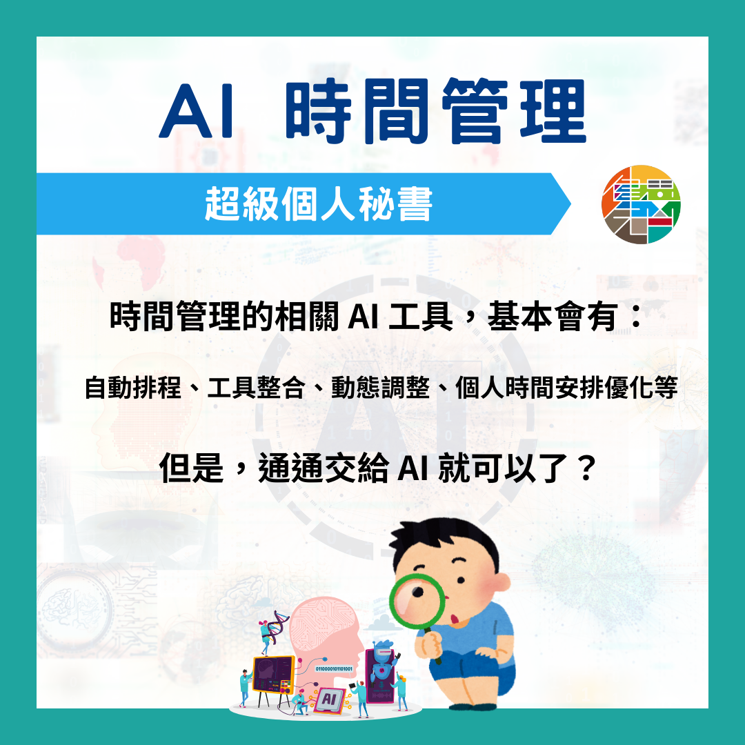 這兩年,AI 工具大爆發,新的 AI 工具不斷出現,並持續影響人類的科技發展、工作方式,甚至是生活模式。其中包含我們花很多時間、精力,且不斷失敗的「時間管理」。