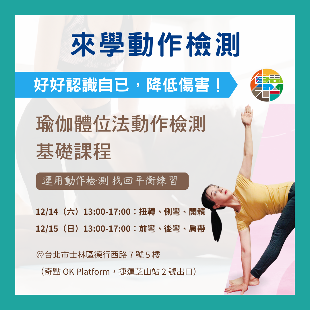 動作檢測能幫助練習者了解自身的身體狀況。例如,前彎做不好,是什麼問題呢?經動作檢測確認後,若是活動度不足,就來解決活動度;反之,是控制力問題,就加強訓練。