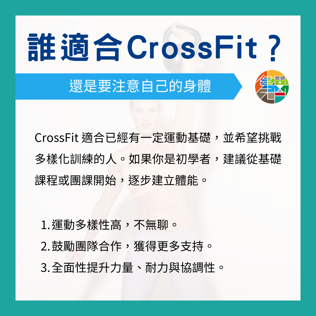 CrossFit 適合已經有一定運動基礎,並希望挑戰多樣化訓練的人。如果你是初學者,建議從基礎課程或團課開始,逐步建立體能。