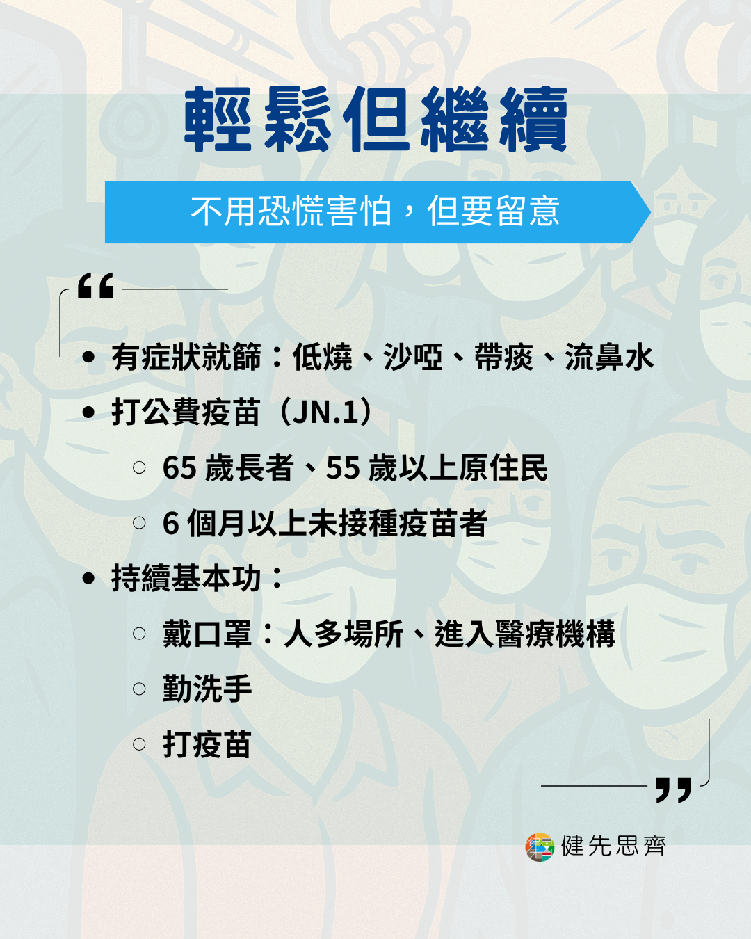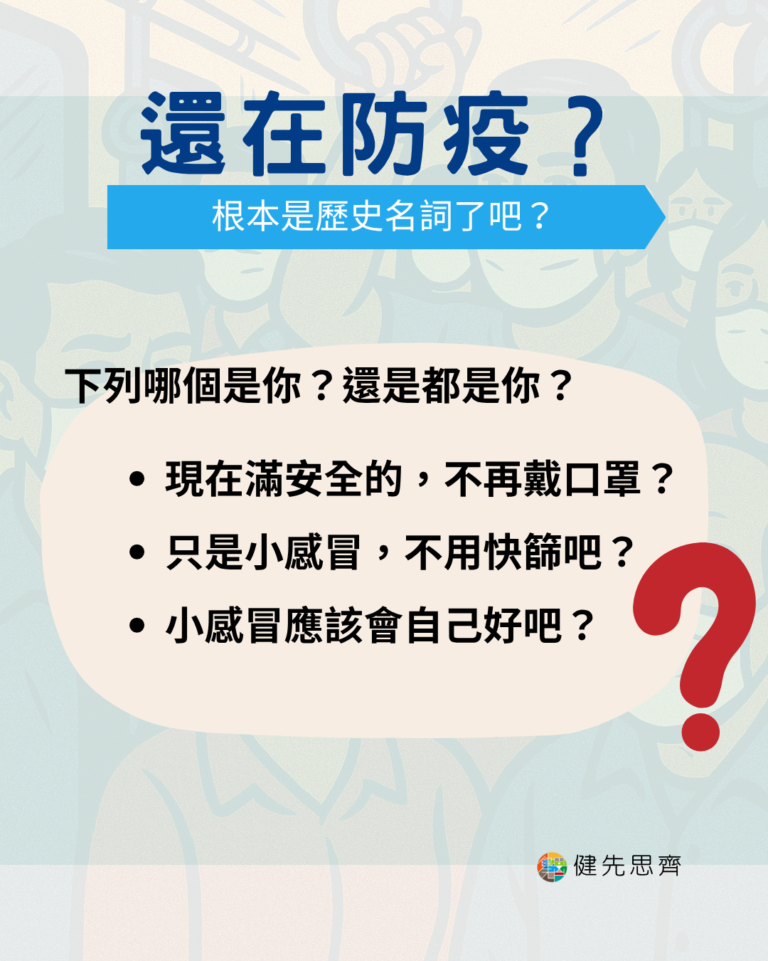 勤洗手、帶口罩、打疫苗感覺是很久以前的事情了,平常也沒什麼看到人在咳嗽、政府防疫措施早就放寬不少,大家自然戒心下降。