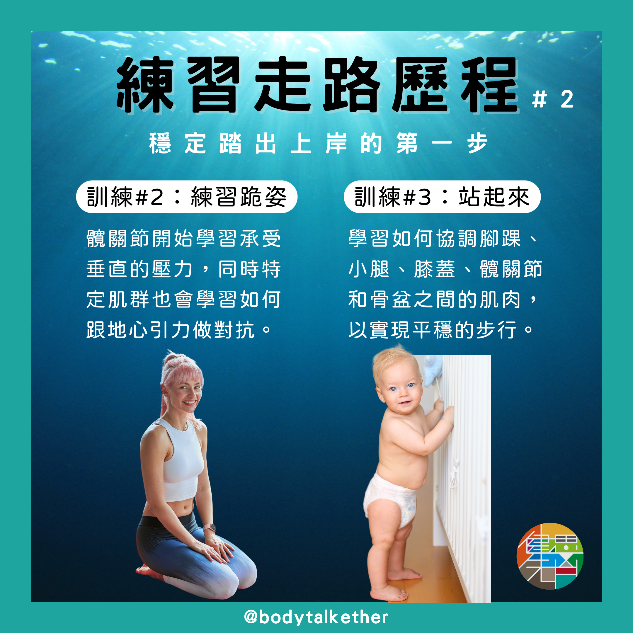 髖關節開始學習承受垂直的壓力,同時特定肌群也會學習如何跟地心引力做對抗。