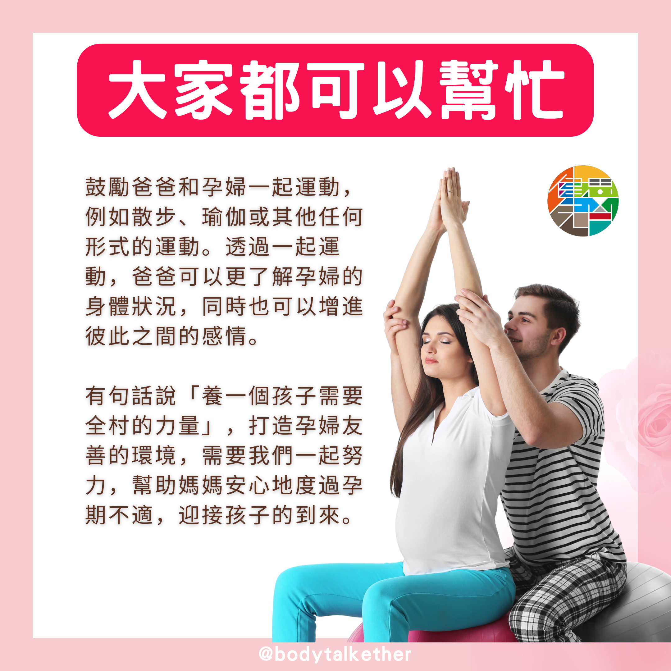 有句話說「養一個孩子需要全村的力量」,打造孕婦友善的環境,需要我們一起努力,幫助媽媽安心地度過孕期不適,迎接孩子的到來。