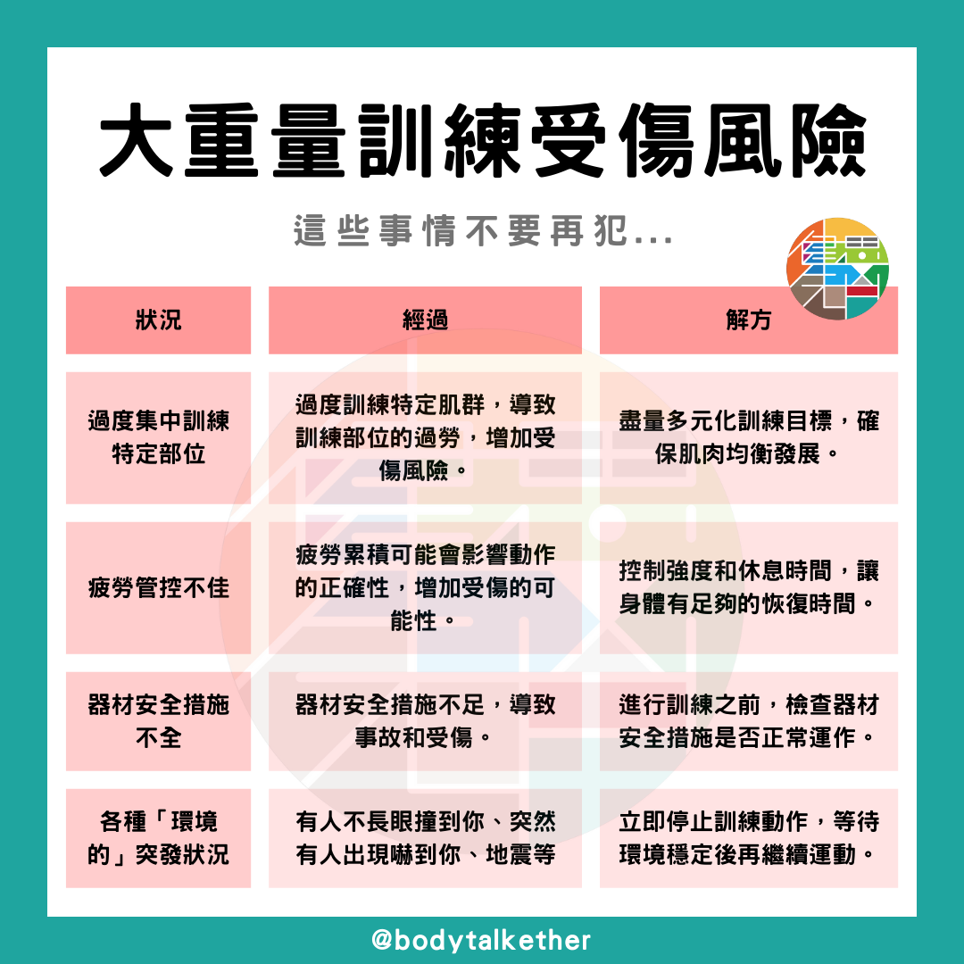 ●|大重量訓練的受傷風險原因?
