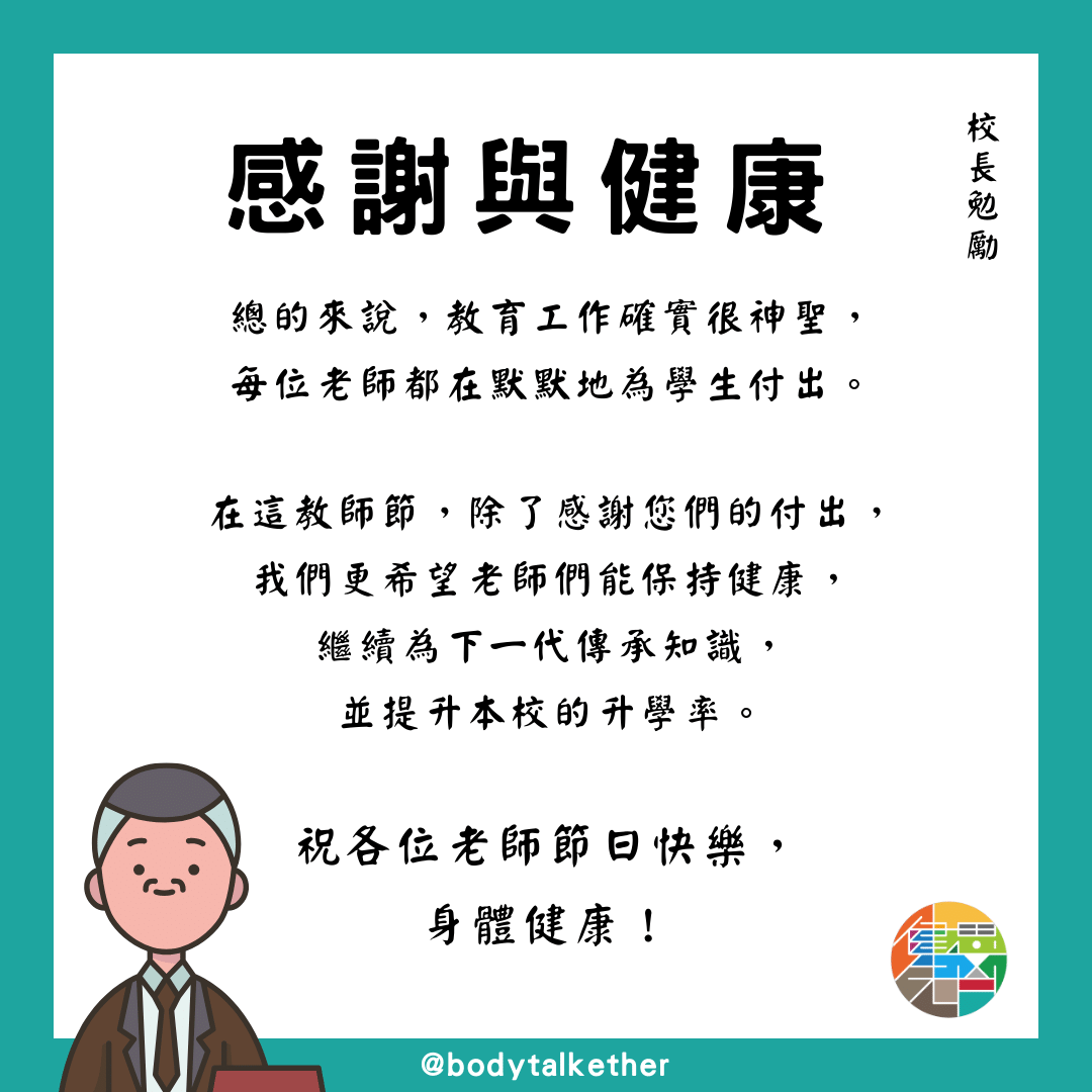 總結來說,教育工作是一項神聖的事業,我們希望老師們不僅能夠保持對教育的熱情,還能擁有健康的身體,以便繼續教育我們的每一個世代。祝各位老師教師節快樂,願您們的付出和辛勞都得到了應有的尊重和關懷!