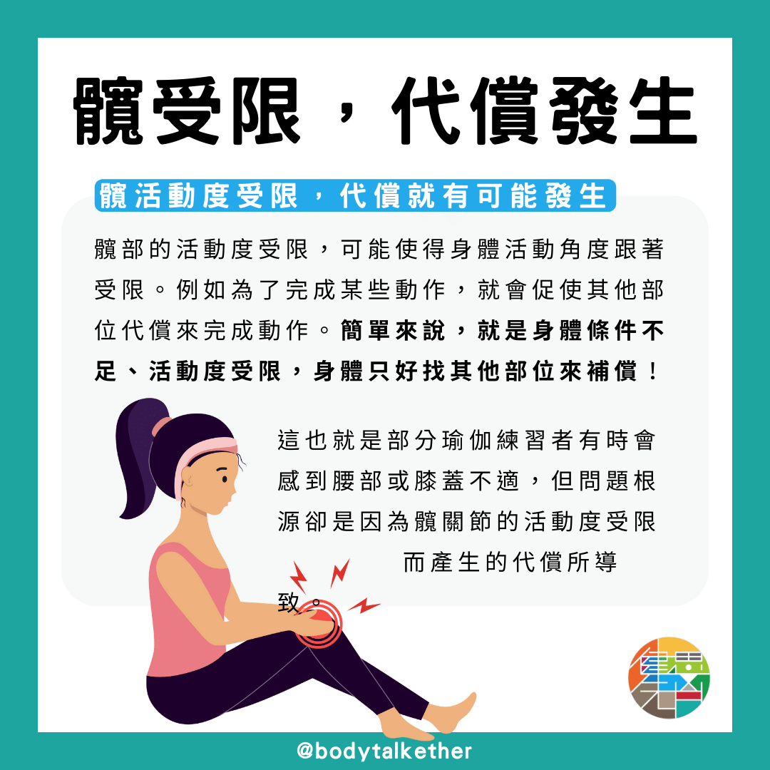 這也就是為何不少瑜伽愛好者在練習時感到腰部或膝蓋的不適,其實問題的根源卻不是這些部位,而是因髖關節的活動受限,導致其他部位因為代償而承擔過多的壓力。