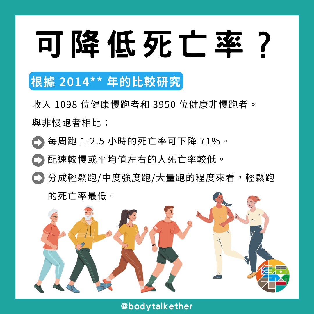 因此,根據研究的資料來看,將跑步速率降低,死亡率也有可能降低。