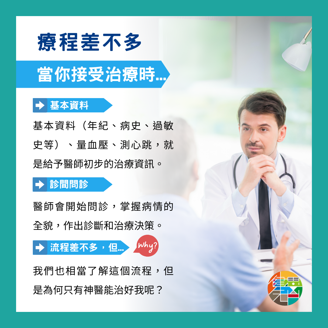 做為病患的我們也相當了解這個流程,但是為何只有神醫能治好我呢?