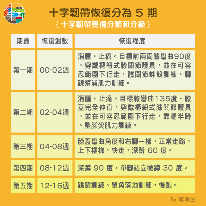 十字韌帶恢復分為 5 期