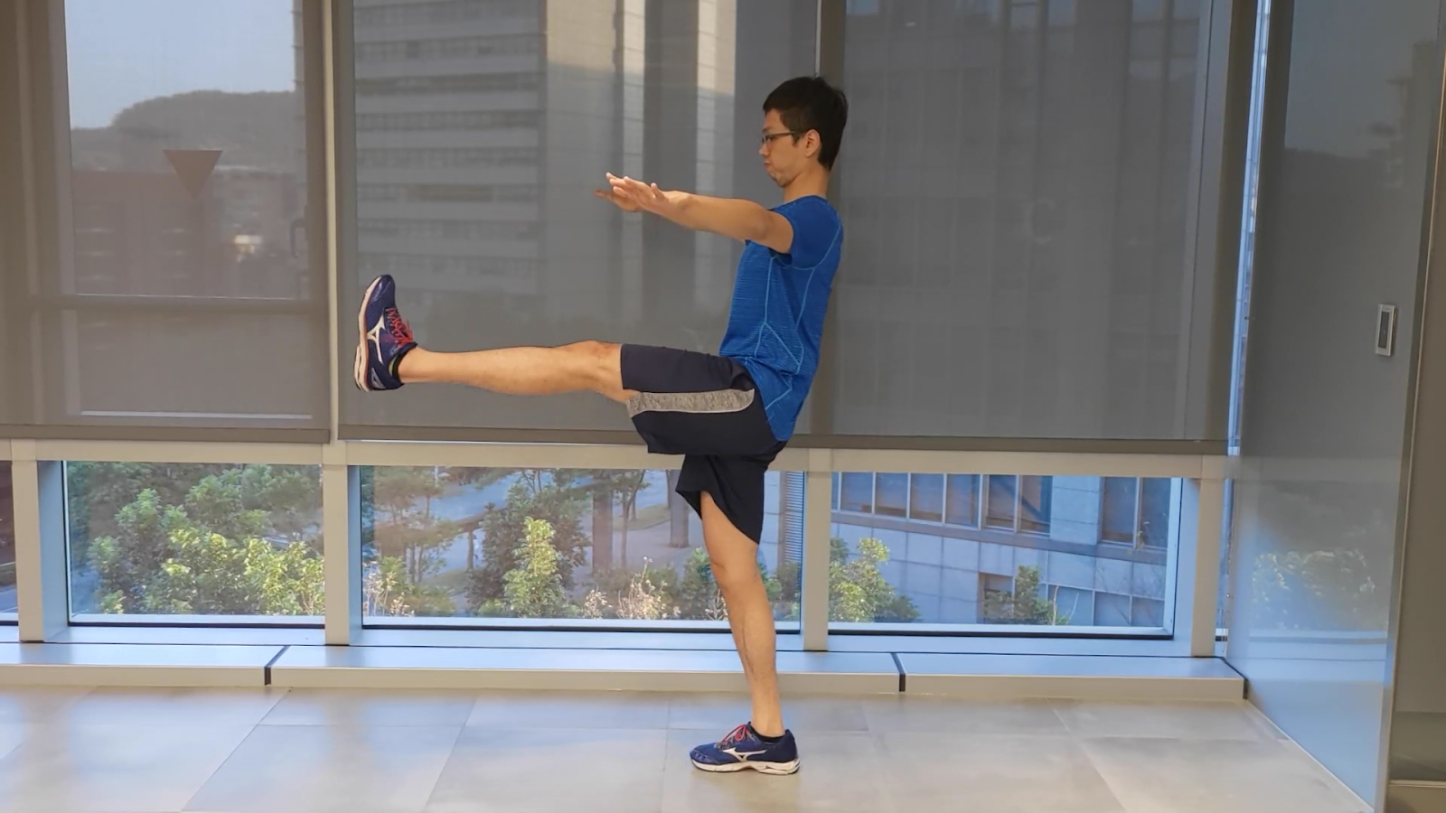 為了達到動態延展髖關節和膝關節,我們可以做類似跳「康康舞」的踢腿動作。在做踢的動作時,要記得盡量打直踢出去的腿,這樣做才會有效果。