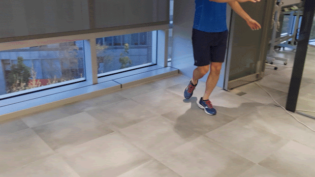 以弓步蹲做行走訓練。這個動作可以取代扭轉膝蓋的暖身動作,並且完整活化我們的下肢。