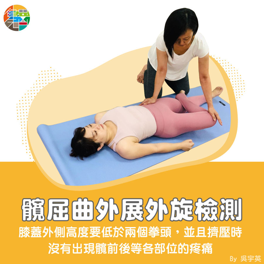 我們可以藉由躺姿髖屈曲外展外旋(見圖 6)的被動檢測,來評估髖的角度是否足夠。